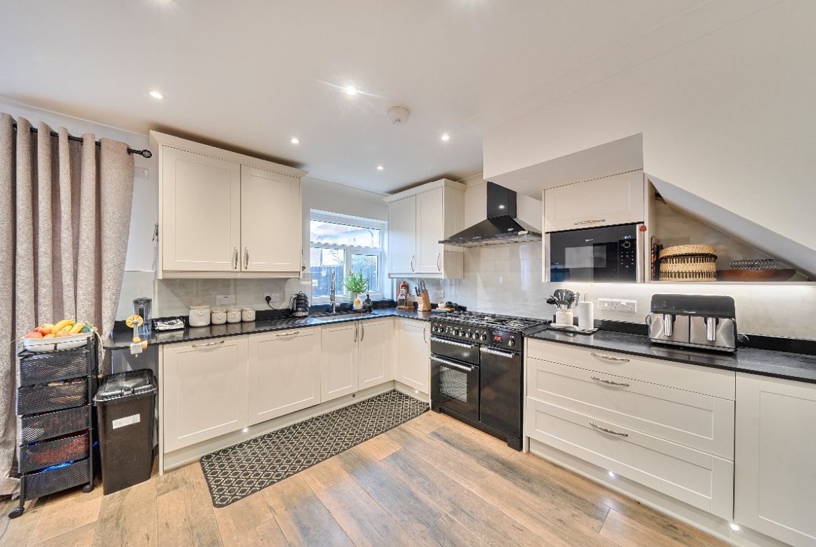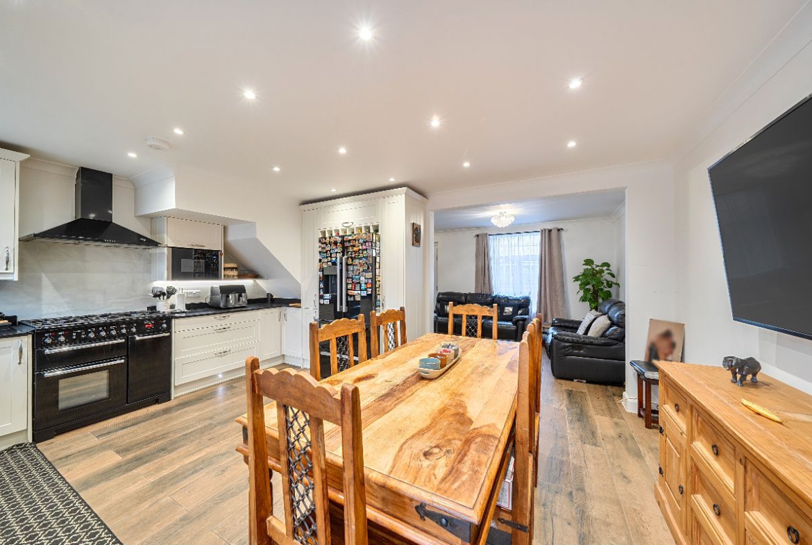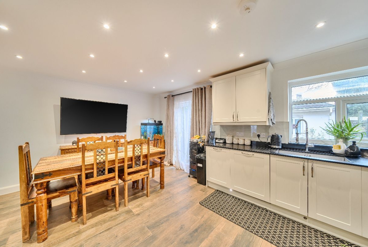 The property benefits from a driveway for two vehicles and a rear extension creating a modern open-plan living, dining, and fully fitted kitchen, refurbished just over one year ago.