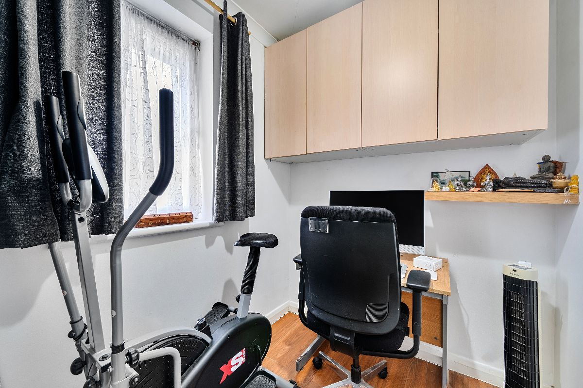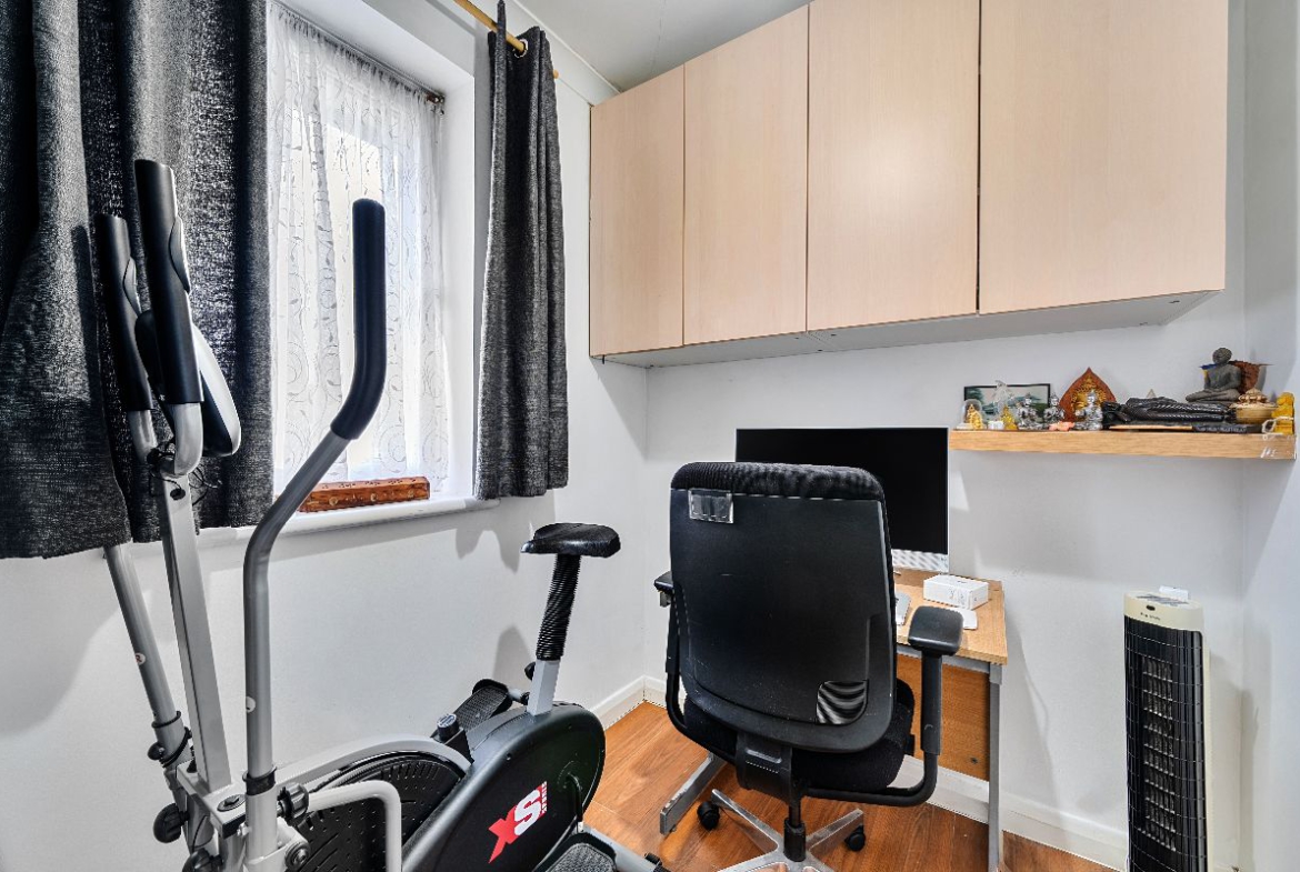 The first floor offers three bedrooms and a modern family bathroom, with fitted wardrobes to the master and second bedroom, plus a box room currently used as a home office.