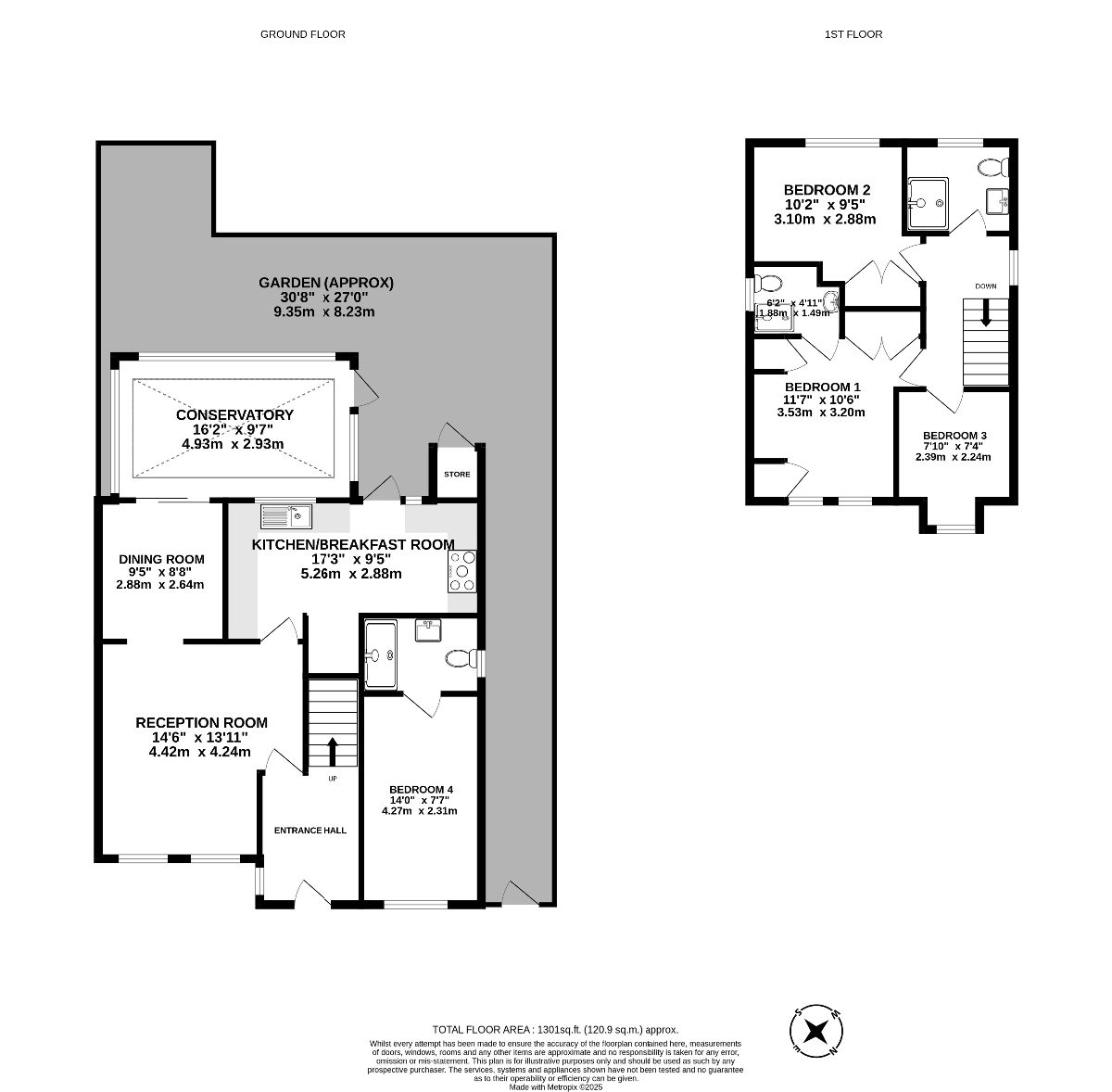 The ground floor offers a welcoming hallway, bright lounge, dining room, extended kitchen with conservatory, plus a versatile bedroom/study with en-suite. Upstairs there is a master bedroom with en-suite, two further bedrooms and a family bathroom.