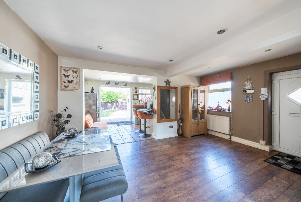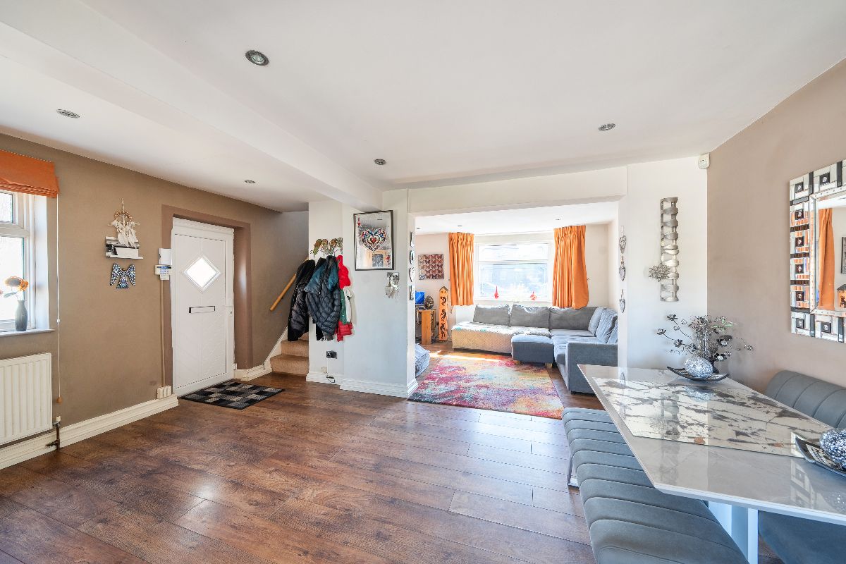 The ground floor comprises a welcoming living room, a separate dining room, and a generously sized extended kitchen, providing excellent space for both everyday living and entertaining. The property benefits from an abundance of natural light, creating a warm and inviting atmosphere throughout.