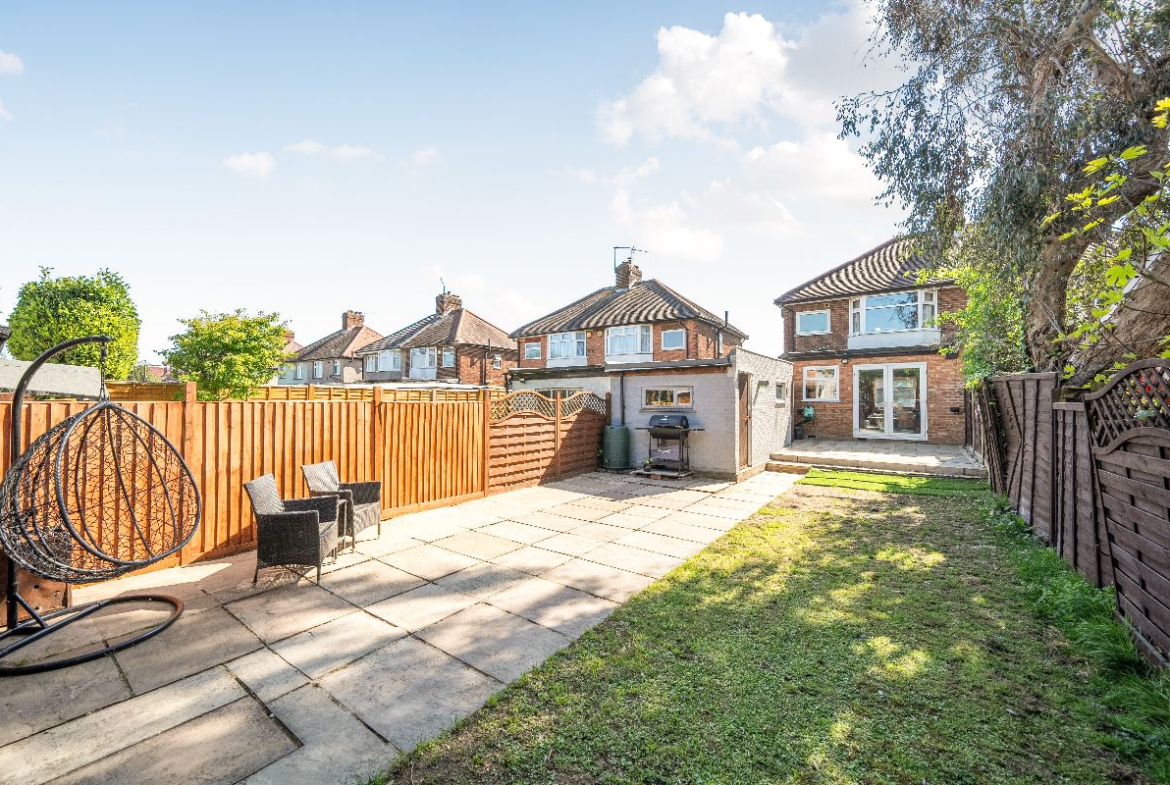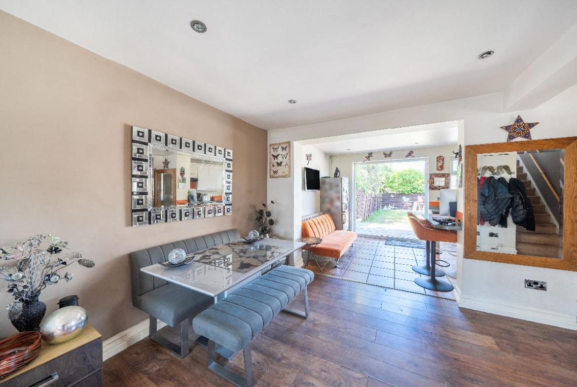 Chain-free Semi-Detached two-bedroom home featuring a bright extended kitchen, separate living and dining rooms, south-facing garden, driveway for two cars, plus garage and shed. Ideal for first-time buyers or investors.