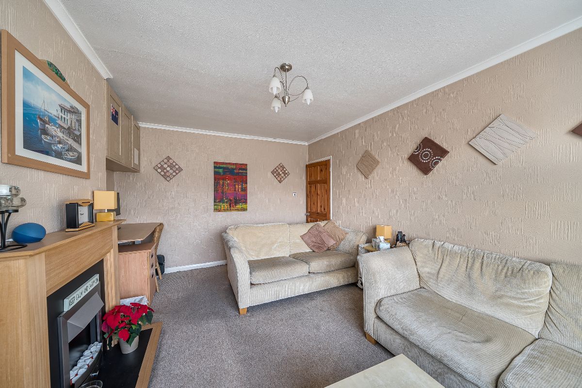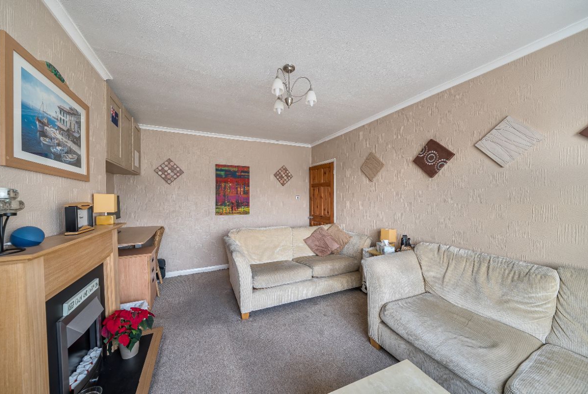 Internally, the home comprises a spacious reception room, a separate fitted kitchen, two bedrooms, and a family bathroom. The layout is practical and well-balanced, offering comfortable living space with excellent natural light.